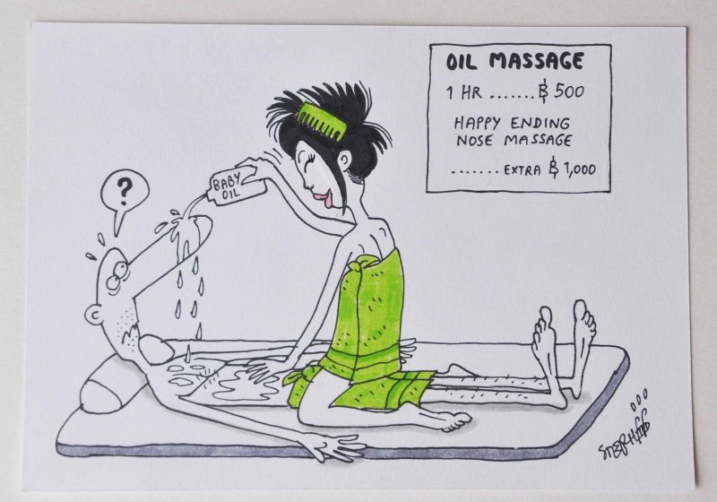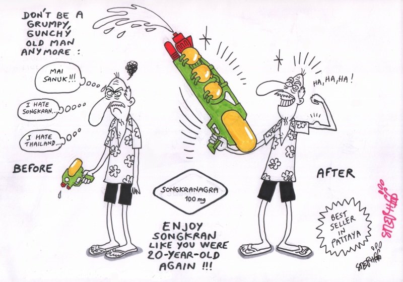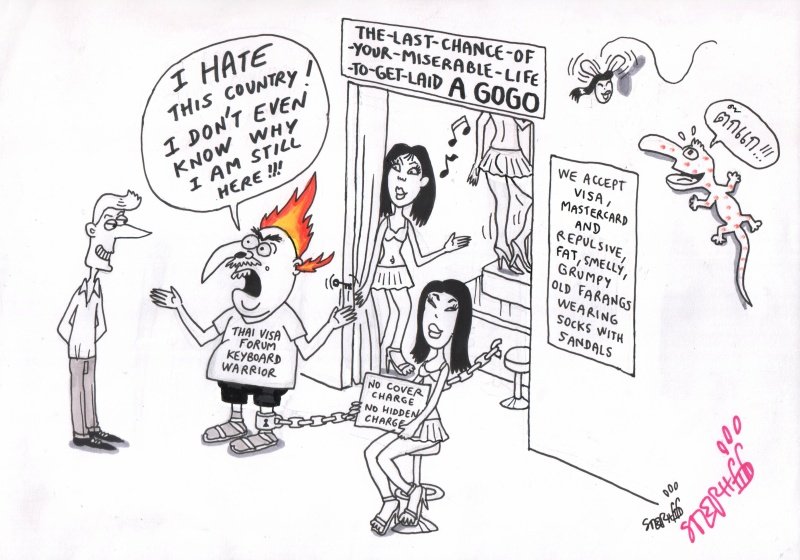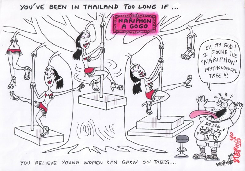 He worked with Bangkok based newspaper “The Nation” from 2003-to 2019, becoming their main cartoonist. His cartoon column “Ministry of Farang Affairs”, making fun of Farang life in Thailand (but also making fun of the locals), has been published in many magazines, as well in the Saturday edition of “The Nation”.